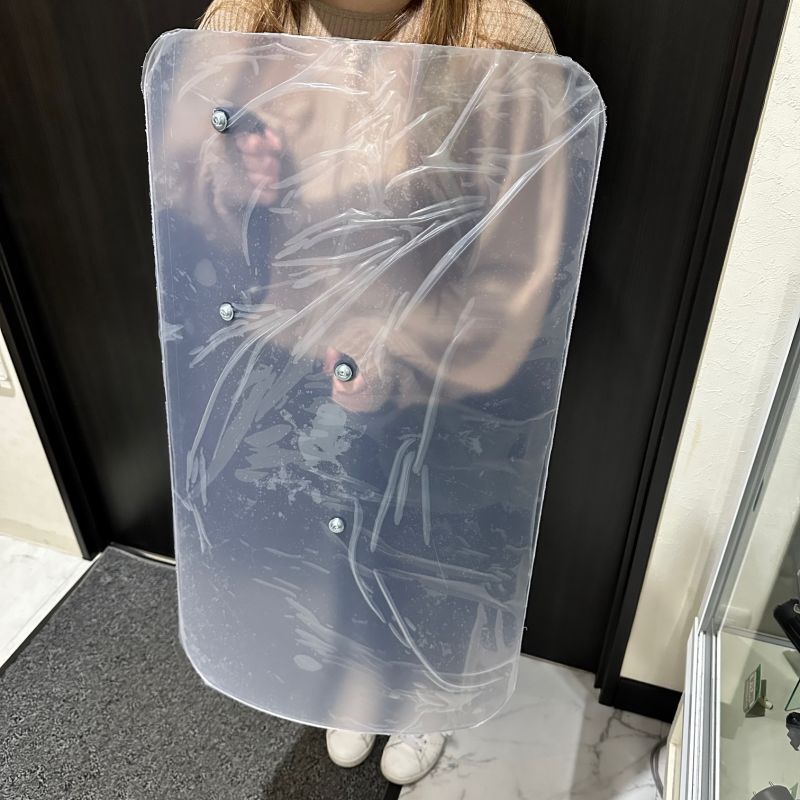 十分な強度を備えたしっかりとした中型透明シールドです。完全日本製となりますですので